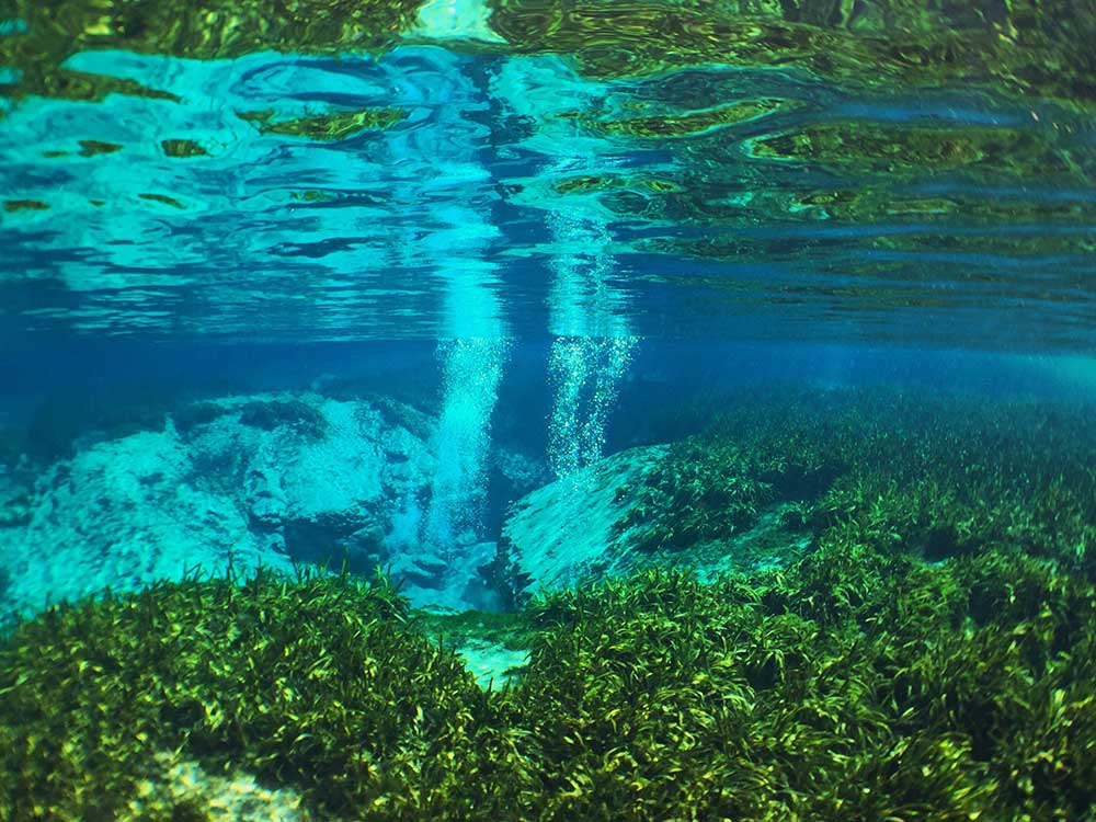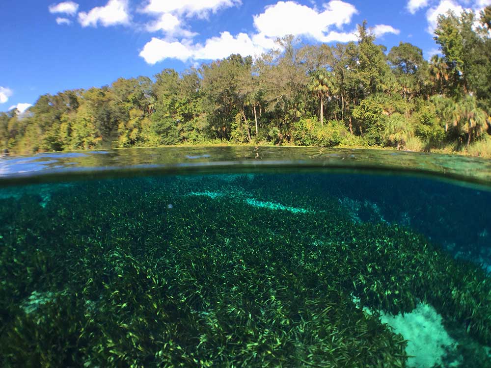 Alexander Springs is located within the Alexander Springs Recreation Area on the eastern side of the Ocala National Forest. Multiple spring vents under a limerock ledge discharge clear and nearly constant 72 degree F water, forming a large spring pool. The bottom of the pool is a combination of sand and aquatic plants.