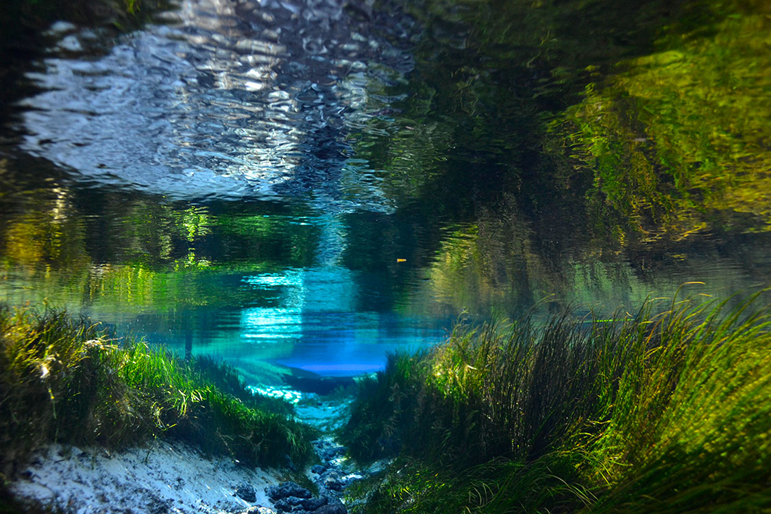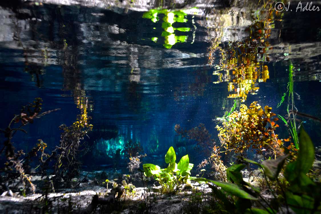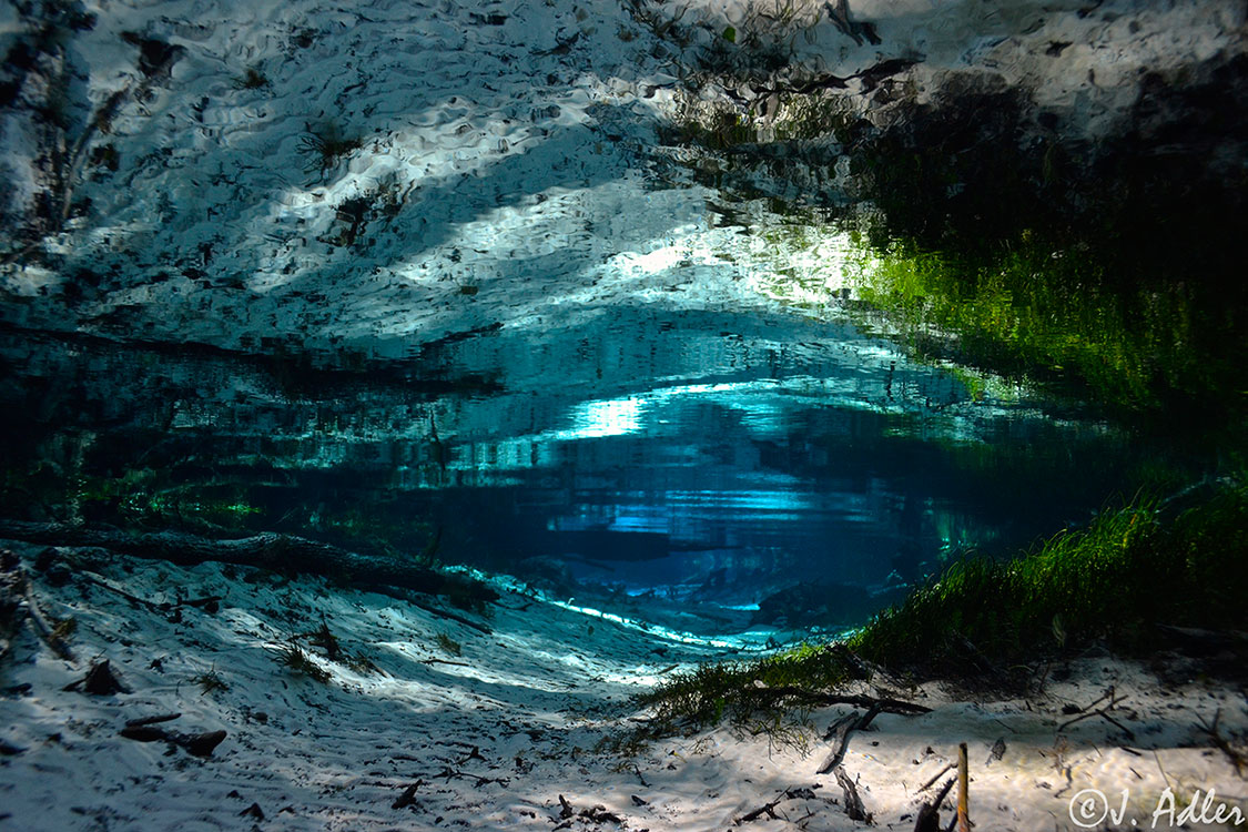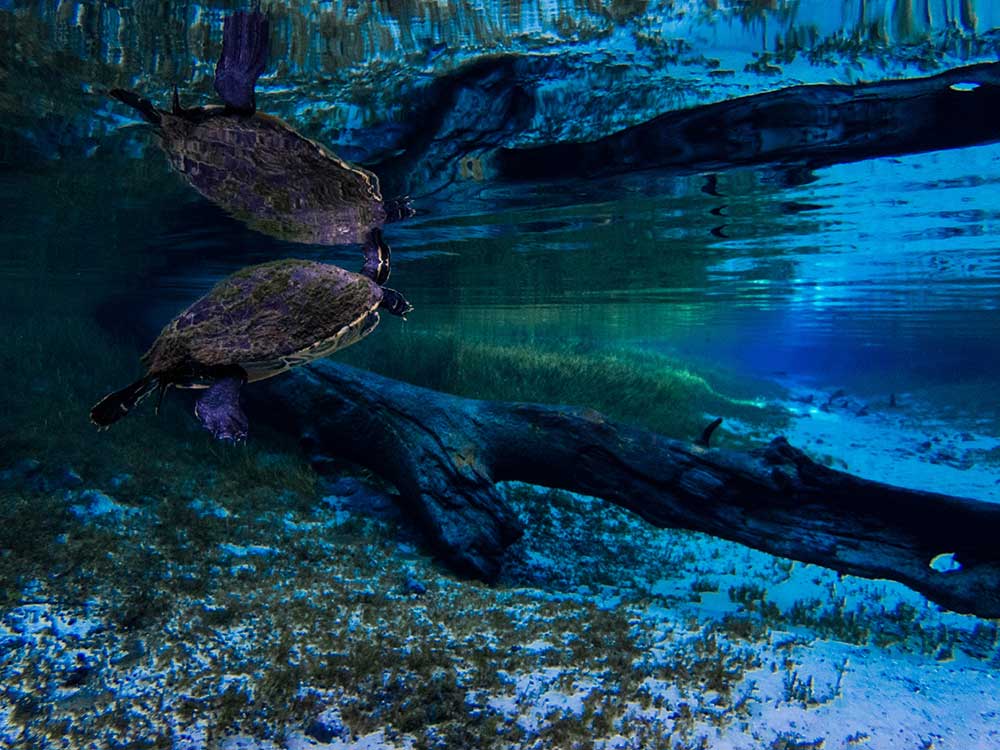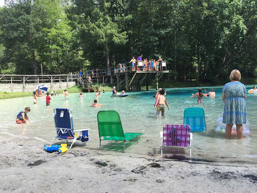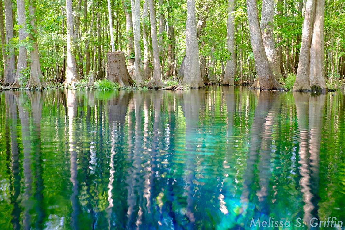 The 72-degree Farenheit water is the same temperature year-round and provides a refreshing break in the hot weather. You can bring a tube and float down the spring run to the Santa Fe River. An elevated quarter mile-long wooden boardwalk extends from Blue Spring north along the spring run to the Santa Fe River.
