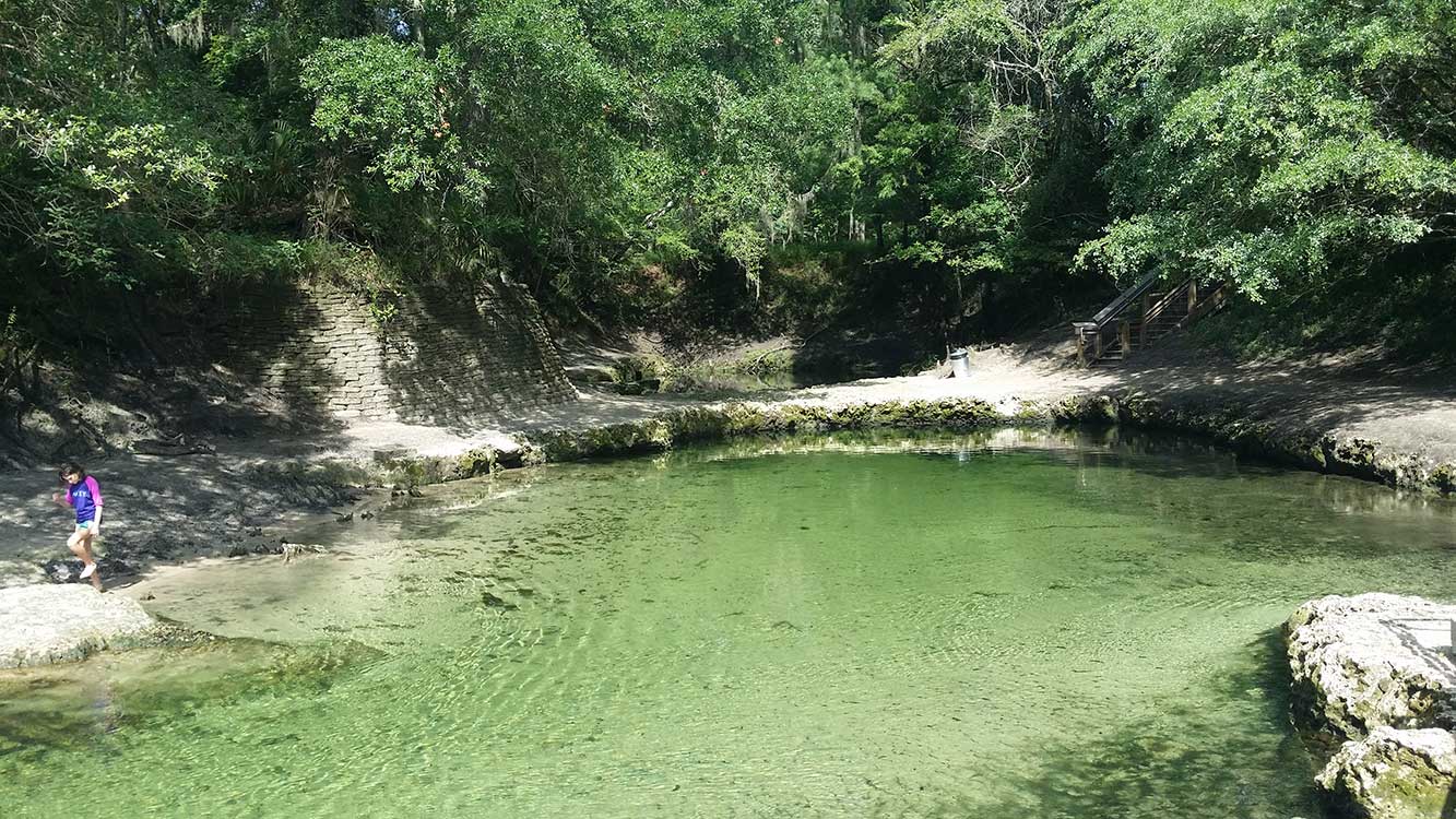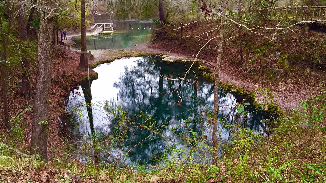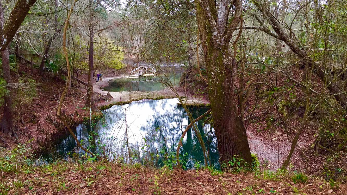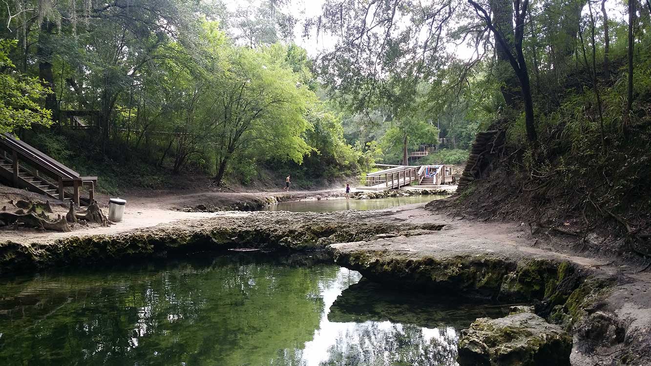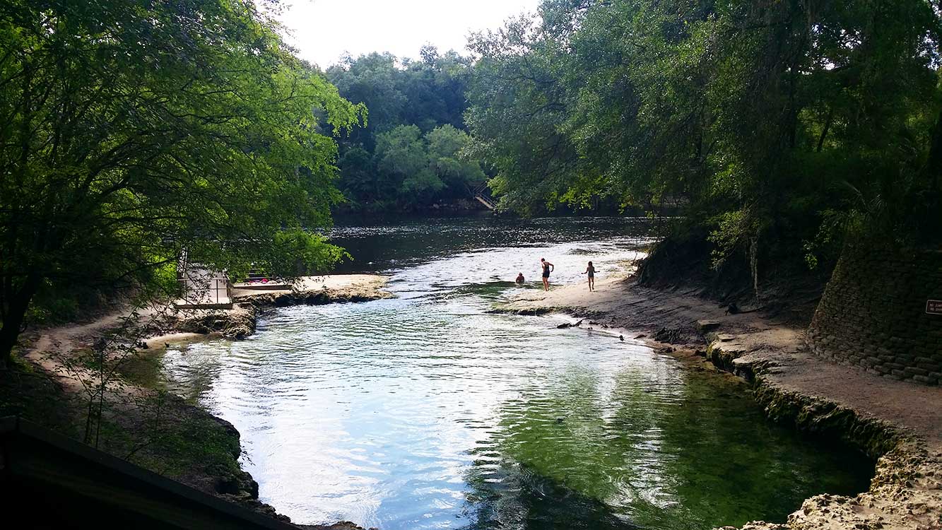 Visitors can take a dip in the first magnitude spring, walk across the natural limestone bridge that crosses the spring run flowing into the iconic Suwannee River or picnic under the shade of the oak trees with their swaying Spanish moss. Fish or canoe on the Suwannee River or stay in one of the park's rental vacation cabins, which stand on stilts high above the river bank.