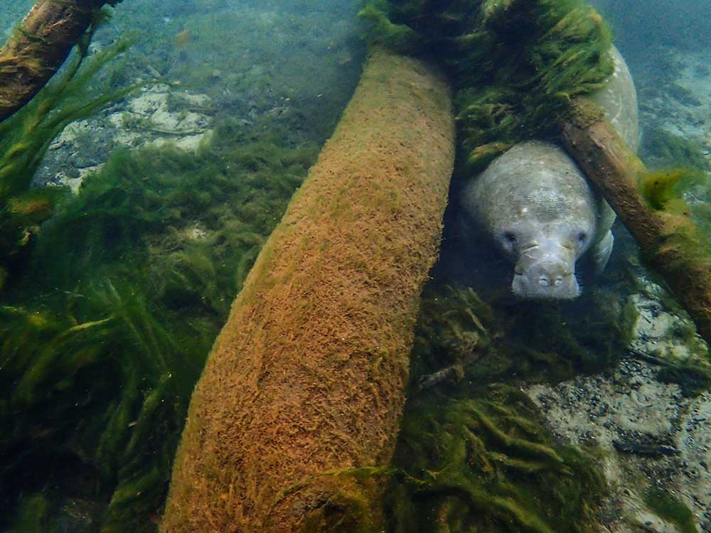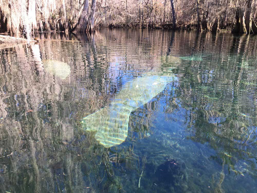 Manatee Springs is located in Chiefland, Florida.West Indian manatees swim upriver for the warmth of the springs. Visitors enjoy snorkeling, swimming, picnicking, boating and other water activities.